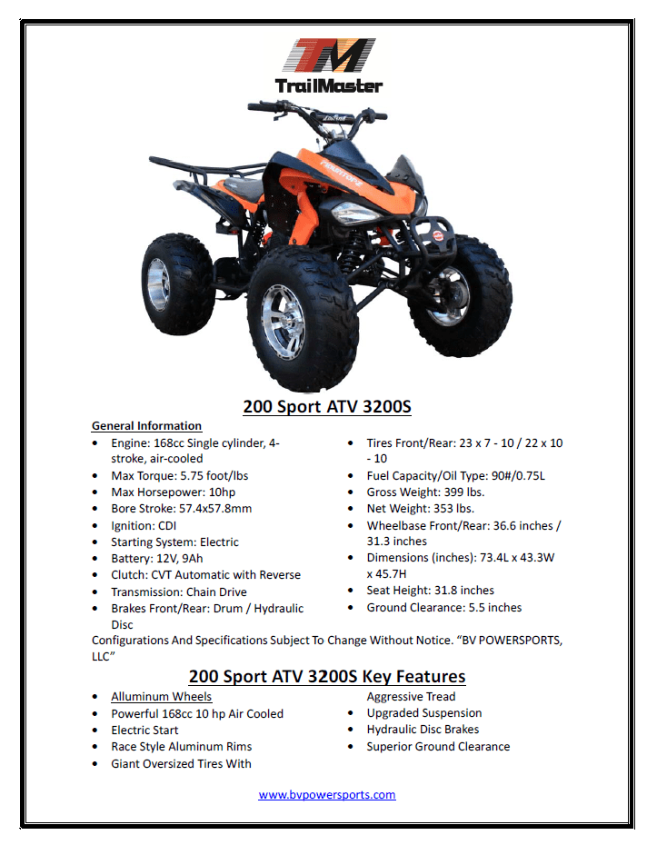 When you want a high-quality, entry-level sport ATV built for off-road adventures, the Coolster 3200S is the perfect choice! Powered by a durable 10hp 168cc 4-stroke engine, it features an automatic CVT transmission with reverse for effortless operation.