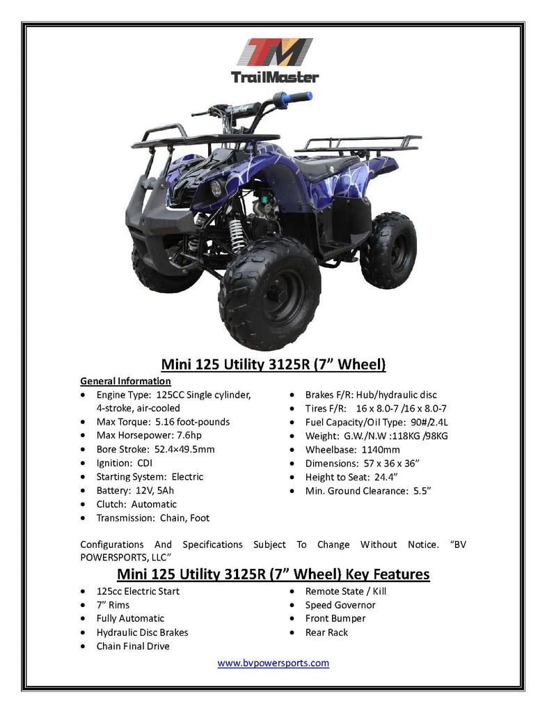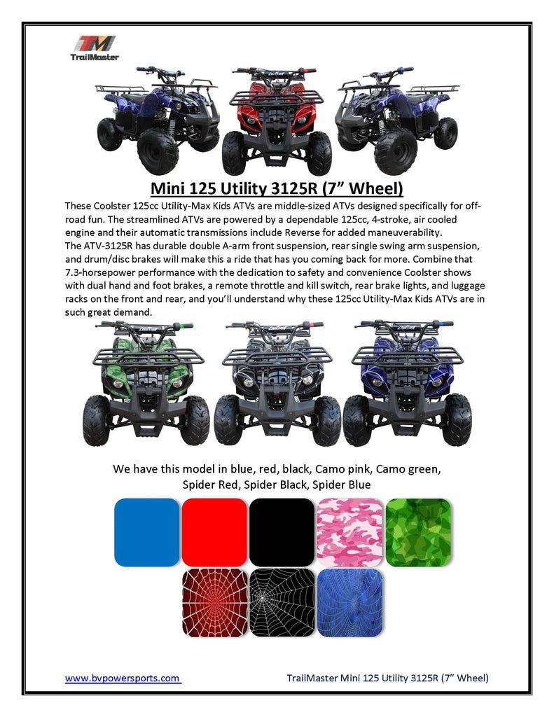 Coolster Mini 125 Utility 3125R ATV, Fully Automatic, 4-Stroke Single Cylinder, Air Cooled, Electric Start, 7-Inch Wheels