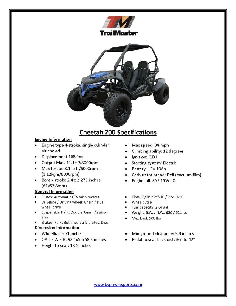 New Trailmaster Cheetah 200 Go Kart, Automatic with Reverse, 4-Stroke, Single Cylinder, Air Cooled