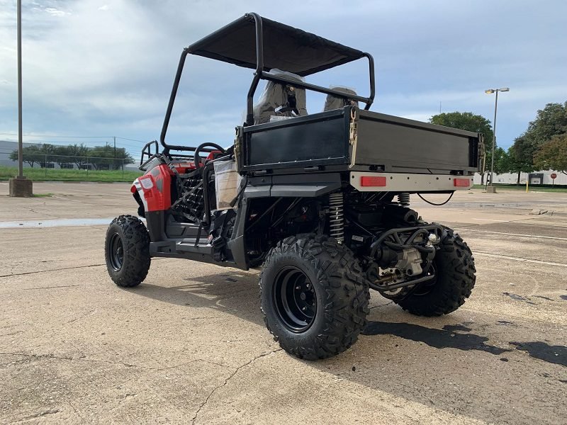 The TrailMaster Challenger 200U is a new model built for utility and adventure. Powered by a 169cc GY6 engine, this vehicle features a large 27.5″ x 45.3″ x 93.5″ dump bed with a maximum load capacity of 165 lbs. Additionally, the dump bed flips down to a 32-degree angle, making loading and unloading more convenient. Moreover, the updated gear ratio setup ensures maximum low-end torque, ideal for tackling heavy tasks.