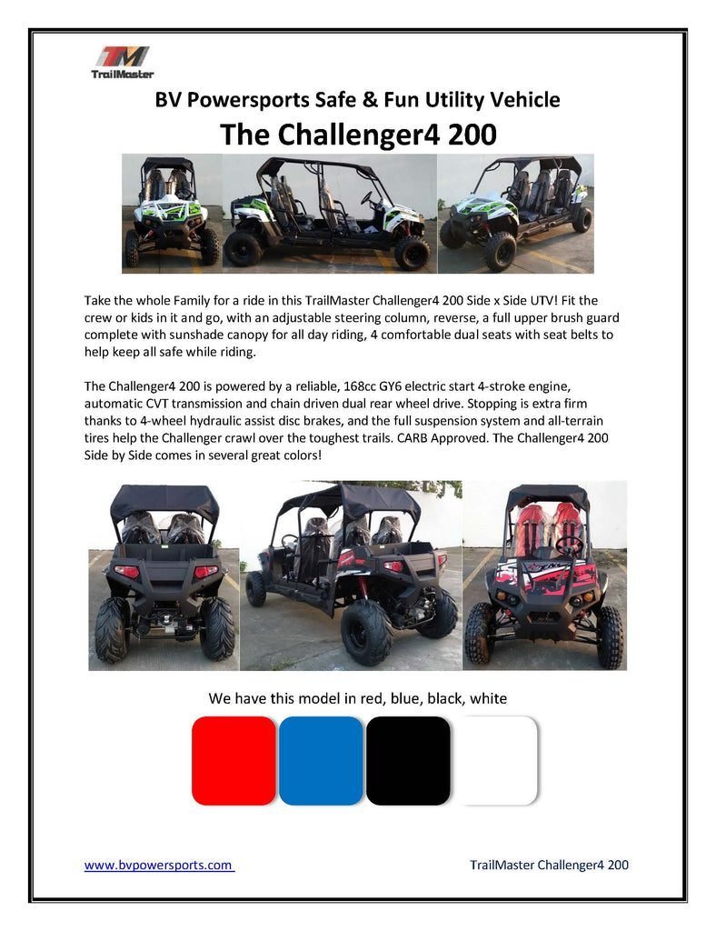 TrailMaster Challenger 4 200 UTV, 4-Seater, Automatic CVT with Reverse, 4-Stroke, Single Cylinder, Air-Cooled, Electric Start