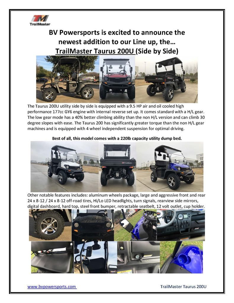 Trailmaster Taurus 200U UTV/Golf Cart Hybrid, Side-by-Side Utility Vehicle, High/Low Gear, Digital Dashboard