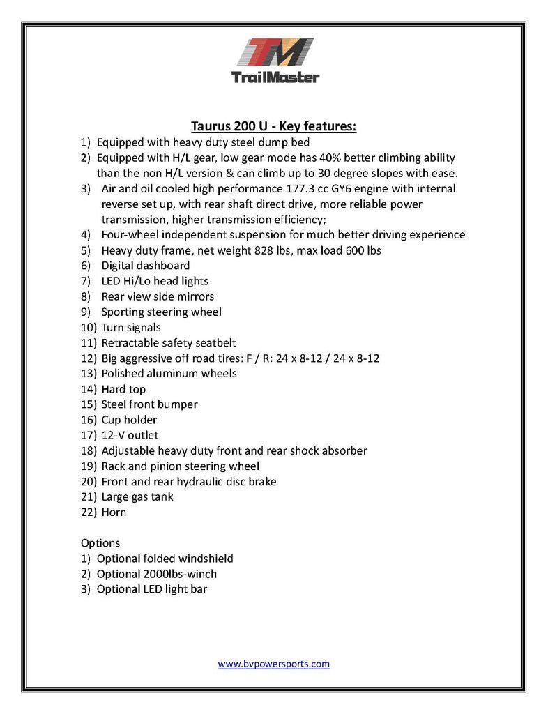 One of the standout features of the Taurus 200U is its 220lb capacity utility dump bed, ideal for hauling supplies and equipment.