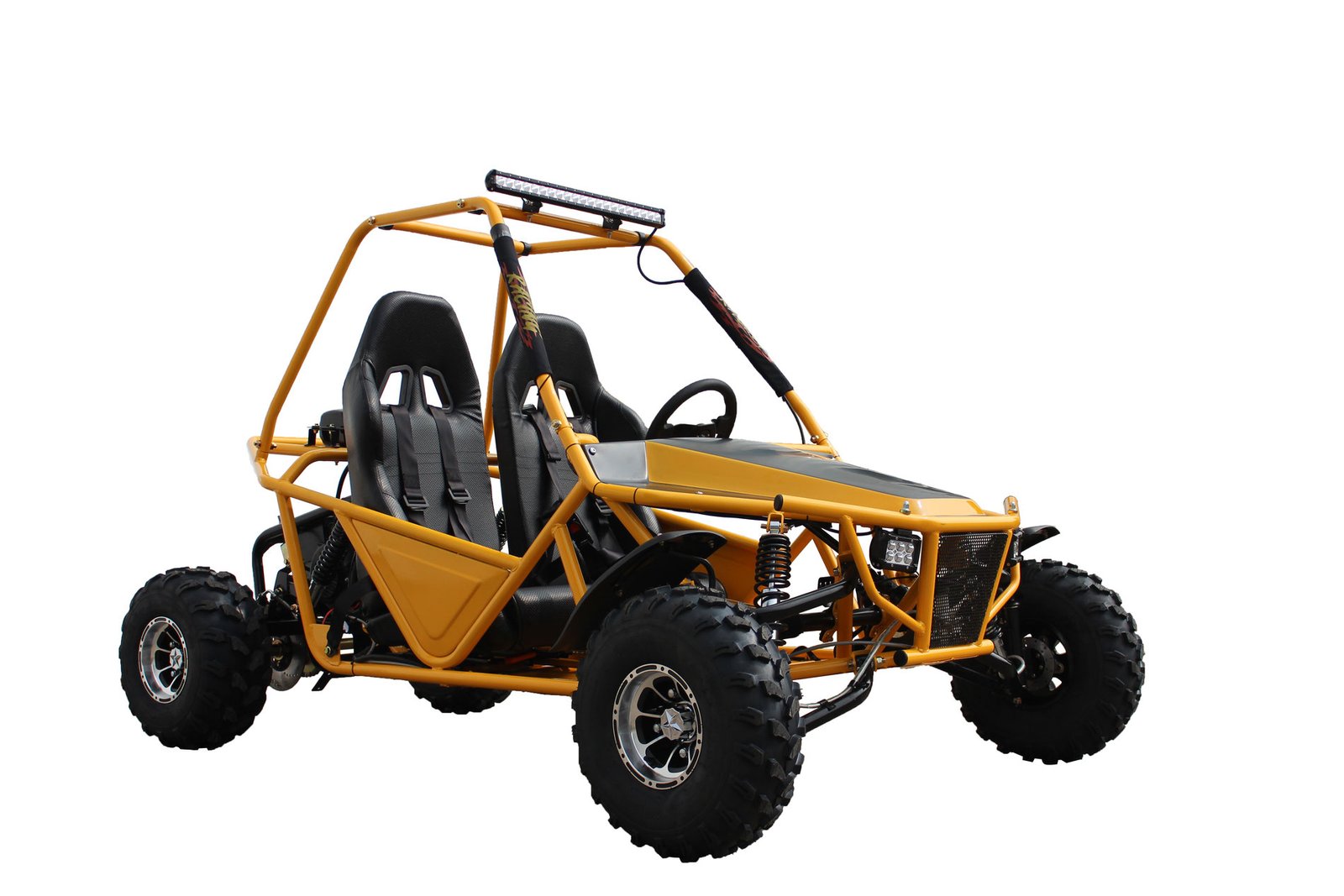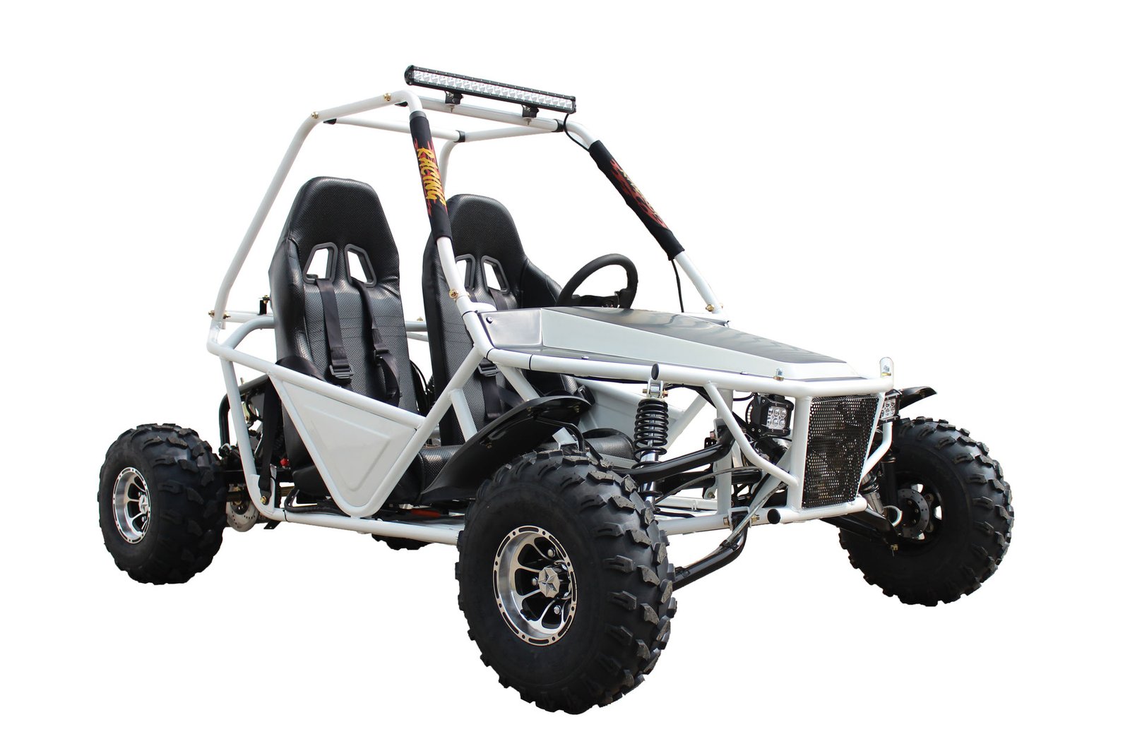 This go-kart supports up to 353 lbs, making it perfect for both kids and adults. The oil-cooled engine enhances durability, while the sturdy construction ensures it can handle rugged trails and repeated rides. Whether you’re exploring trails or racing through backyard tracks, the Vitacci Batman 200CC Deluxe promises fun, safety, and reliable performance.
