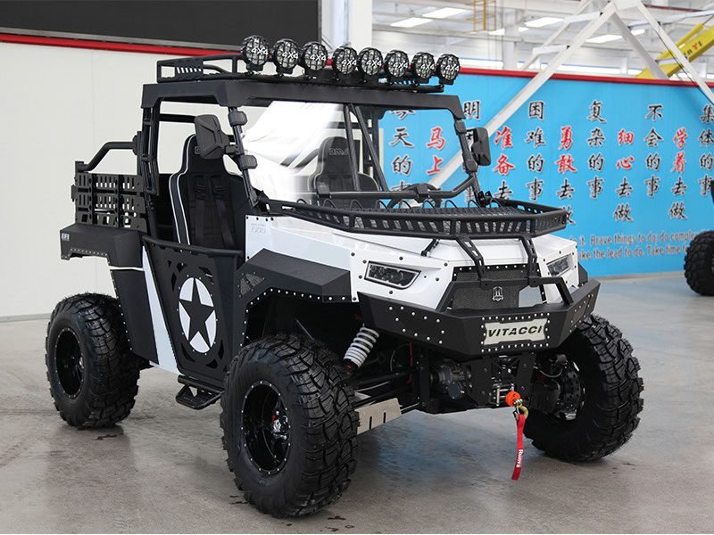 Conquer any terrain with the Vitacci Conqueror 1000cc 3-Seater UTV. Powered by a 996cc V-Twin EFI engine, this UTV delivers exceptional power and reliability. The automatic CVT transmission ensures smooth handling, while electric power steering provides easy control.