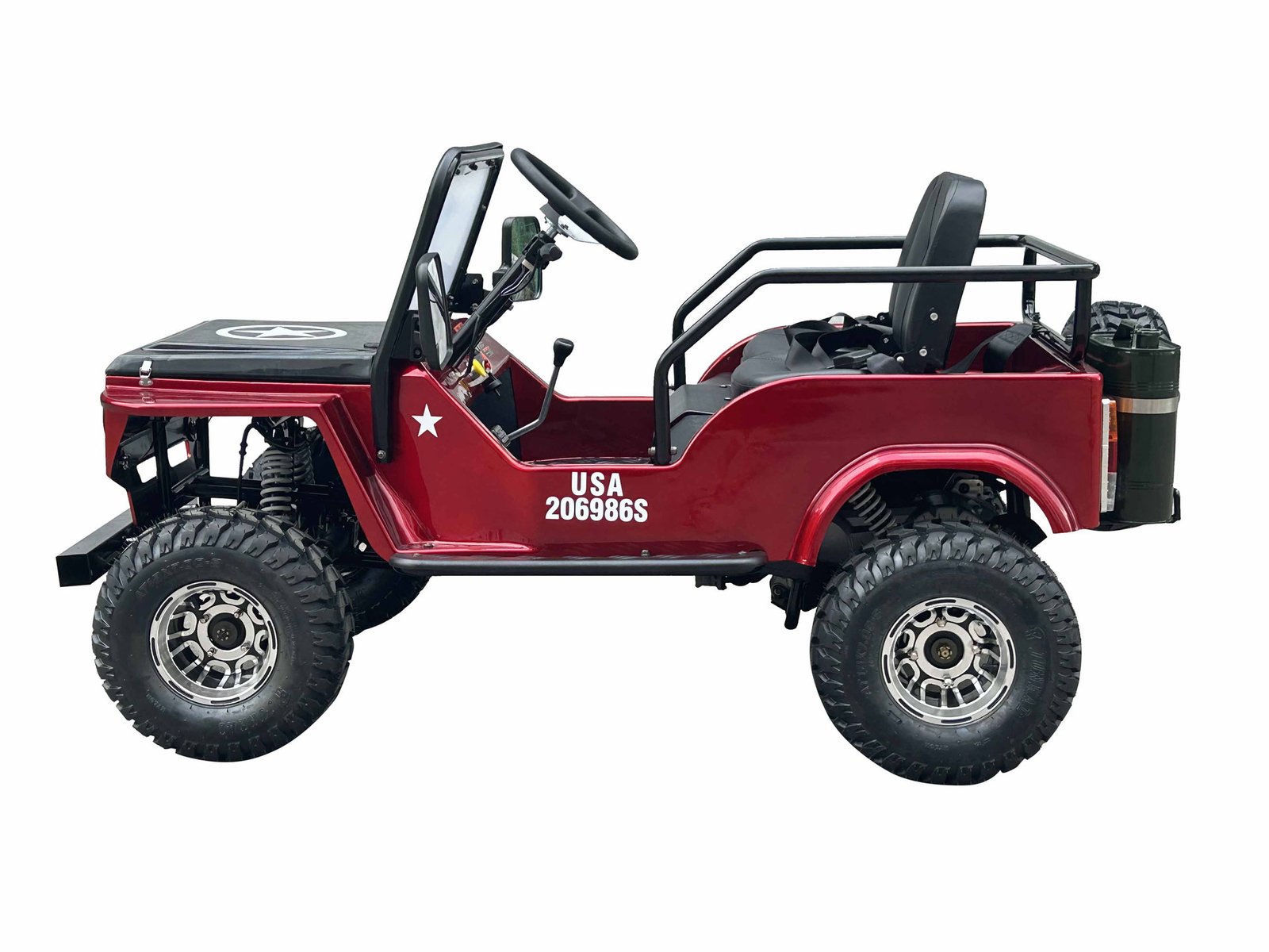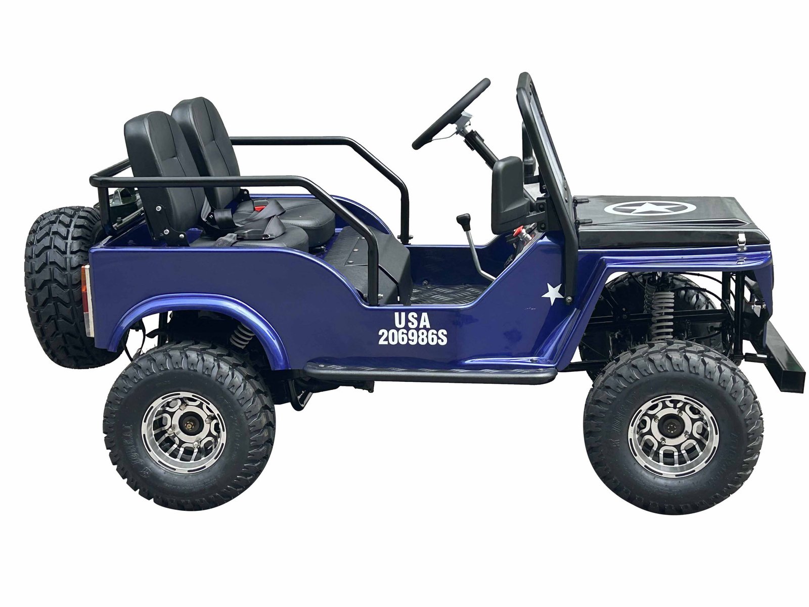 The Vitacci JEEP GR2 150cc Go Kart is a powerful and stylish off-road vehicle designed for adventure enthusiasts. Powered by a 150cc 4-stroke, single-cylinder, air-cooled engine, it delivers reliable performance for both trails and open terrain. Its chain-driven transmission with forward, neutral, and reverse gears provides smooth handling and easy maneuverability.