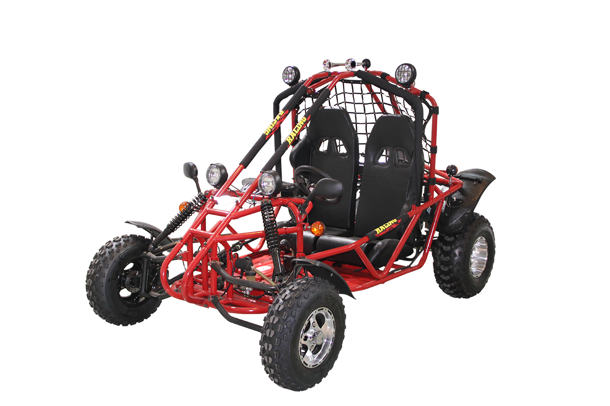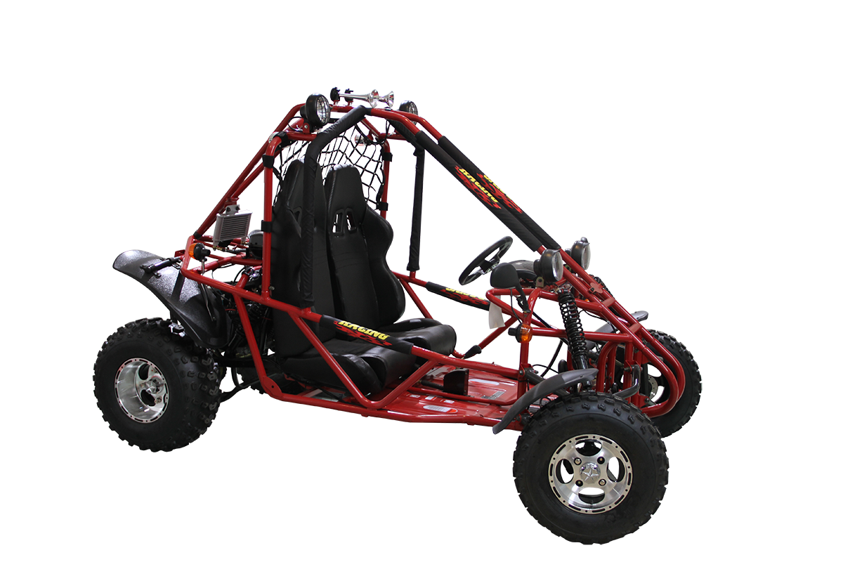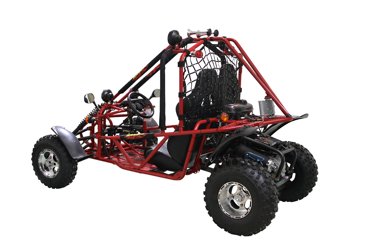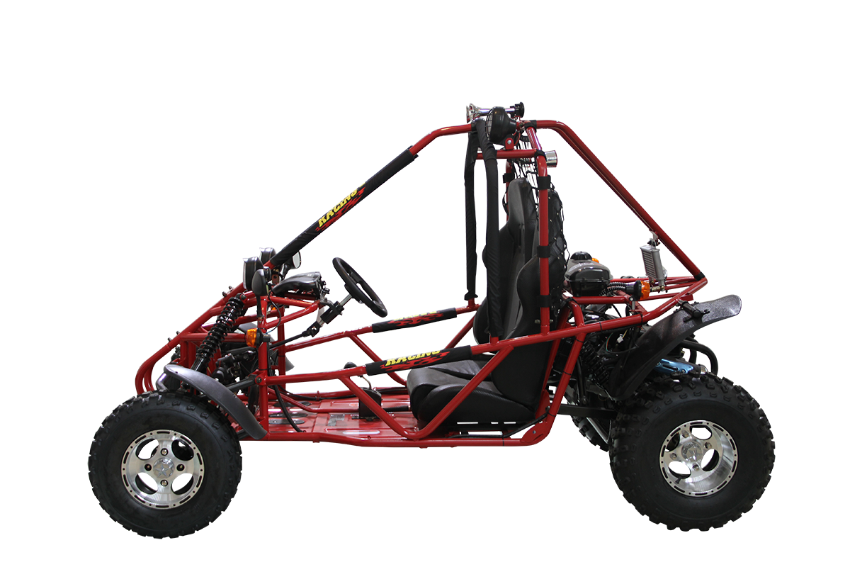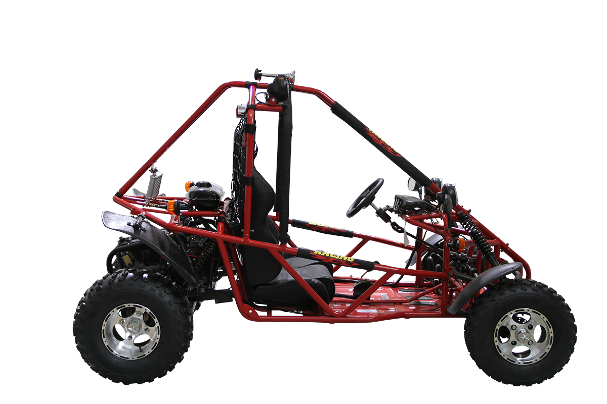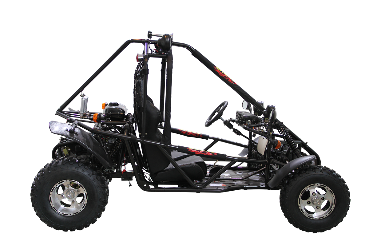 This go-kart supports a loading weight of up to 353 lbs, making it perfect for shared fun with family and friends. Its oil-cooled engine and durable construction ensure long-lasting reliability for trails, open fields, or rugged terrain.